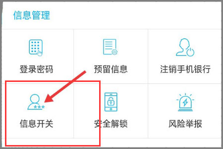 3、然后点击进入安全中心后,在信息管理里面找到信息开关,并点击进入。