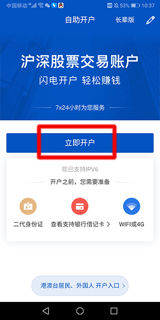境外开户用户应在的港澳台居民、外国人开户页面下进行
