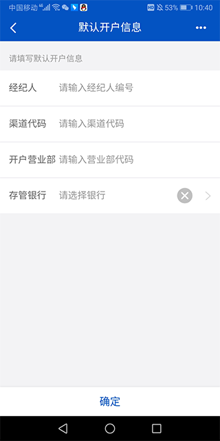 拥有渠道代码的用户可前往默认开户信息页面执行快捷操作