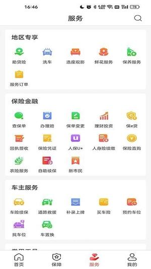 2、保障:健康险、意外险、财产险、人寿险、责任险、旅行险、家庭险的购买窗口,支持在线购买
