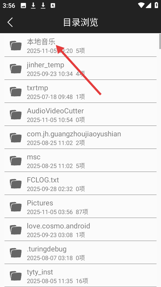 2、在目录浏览界面点击【本地音乐】,进入其下级目录。