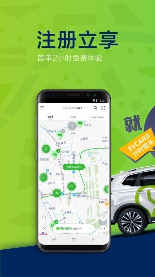 “分时、智慧、共享”,EVCARD新能源汽车分时租赁,为您带来免费出行新体验。