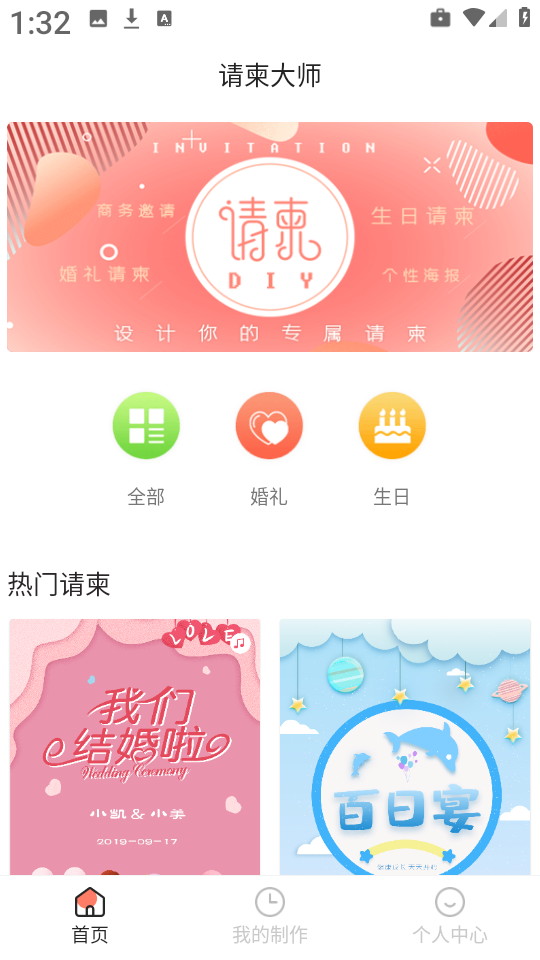 2、成功进入首页之后,我们可以看到超多丰富的热门请柬。