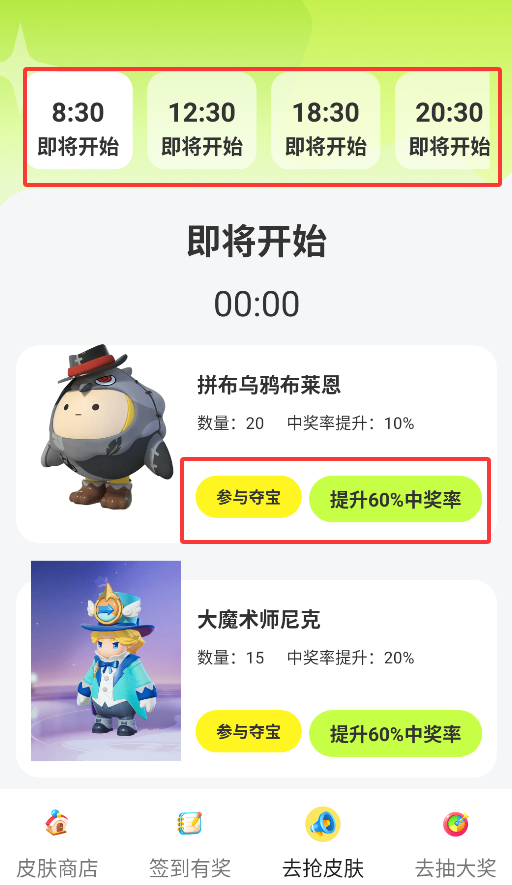 4、限时夺宝活动分时段开放,参与抽奖即有机会获取珍稀皮肤和游戏道具。