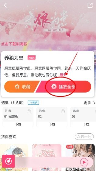 2、在养狼为患的页面,点击播放全部,会弹出登录提示
