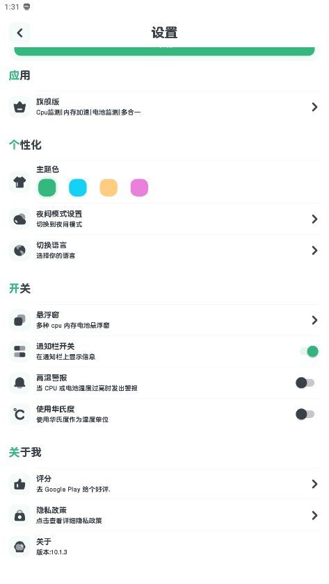 桌面悬浮窗和状态栏悬浮窗实时展示 CPU 温度、电池温度、内存使用率,强大又方便,实时信息想看就看。
