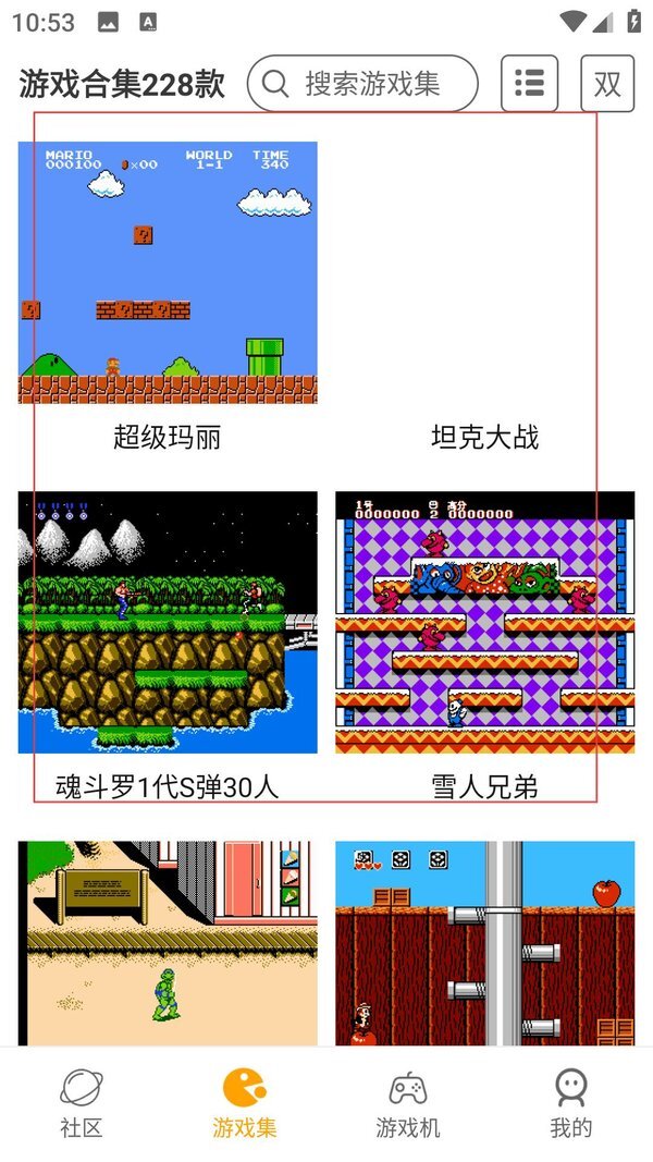 2、进入游戏集页面,有超级玛丽等多款游戏,点击封面,即可开始体验儿时经典。