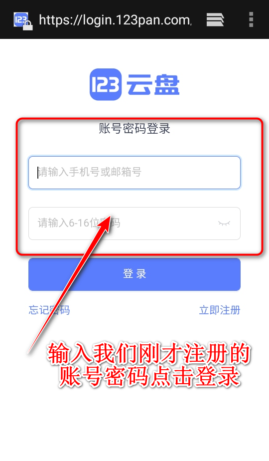8.返回登录界面,输入刚才注册的账号密码点击登录
