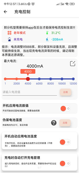4、充电控制,可控制手机充电时的最大电流,或使用其他电池功能;