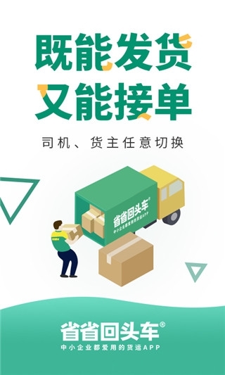 省省回头车为用户提供统一的平台,司机和货主身份可随时切换。司机可接单,也能下单,货主通过认证后可接单,优化闲置运力资源。