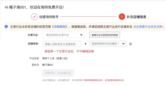 2、手机号注册规则:绑定过淘宝个人店铺,或已绑满6个企业店铺的手机号不可再用来注册开店