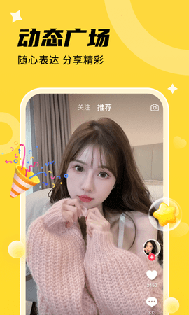 1、动态广场支持发布文字、图片和视频,展示自我。