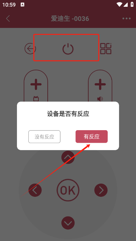 5、等待片刻之后,点击“有反应”即可。