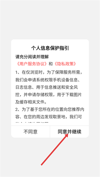 1、进入个人信息保护指引页面后,请仔细阅读《用户服务协议》与《隐私政策》,随后点击【同意并继续】按钮,即可开展后续操作。