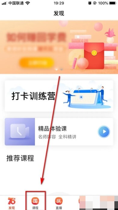 然后点击首页下方的“课程”。