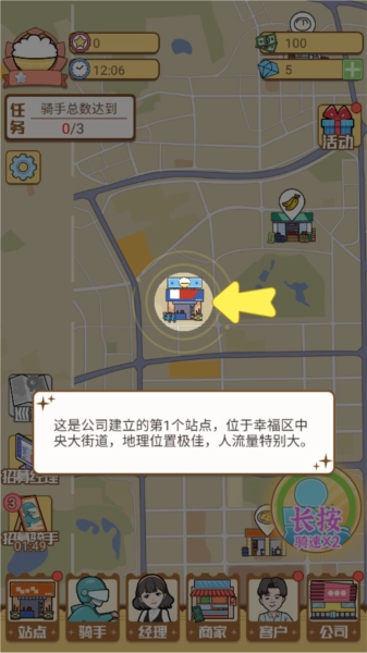 1、进入游戏后,玩家得给自己的外卖公司起个名字。