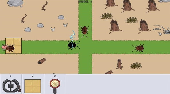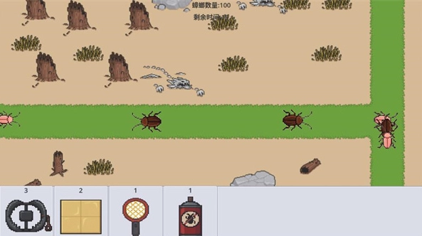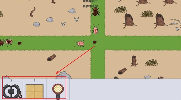 4、使用下方的道具栏的道具,拖到游戏内,消灭蟑螂