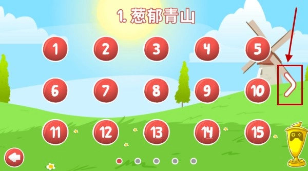 2、到达了关卡选择界面,我们还可以点击屏幕右侧的箭头按键来切换游戏的场景。