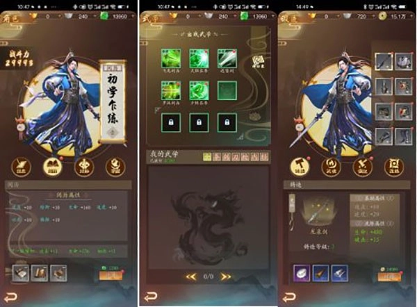 3、想在游戏中增加战力吗?你可以通过角色的阅历、经脉和掌握来提升,也可以通过武学的研习、精进、境界和招式来提升,还可以通过装备的铸造、武魂、强化和洗炼来提升,让你一步步的完成挑战。