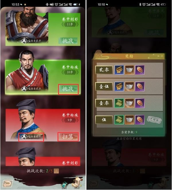 7、夜袭敌营战斗只有24回合,战斗未获得胜利也能获得部分奖励,已经成功挑战的关卡可以一键扫荡。