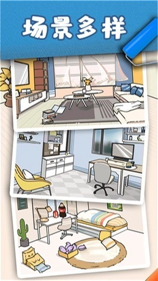 5、金币装修:成功通关后可收集金币奖励,用于在商店选购心仪物品,将原本破旧的房屋逐步打造成温馨舒适的小家。