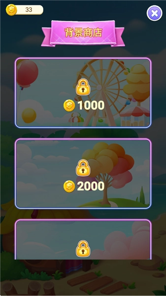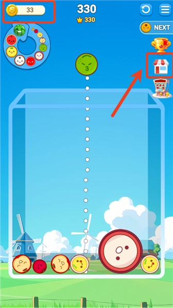 4、合成出的水果体积越大,能得到的金币数量就越多,这些金币可用于兑换背景图片。