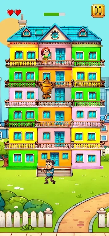 2、本游戏中玩家化身男人,需要在楼下来接受上面掉落的东西。