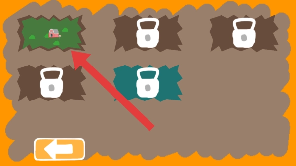 2、画面呈现多个地块,其中一个绿色地块上有房屋图案是特殊地点或基地,其他地块显示壶铃图标是普通区域或待解锁内容。