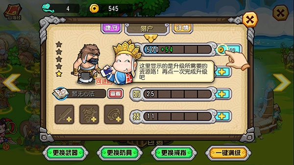 4、每次升级和进阶都需要消耗一定的资源,再点一次即可完成升级进阶。
