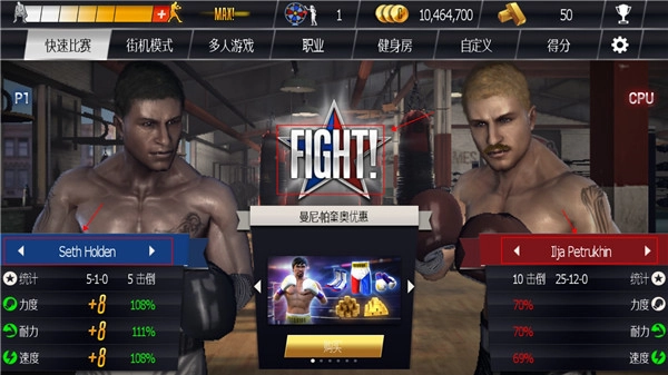 不断进步并获得使用大量独有的、可升级和定制的装备,增强您的拳手的拳击统计数据和能力。