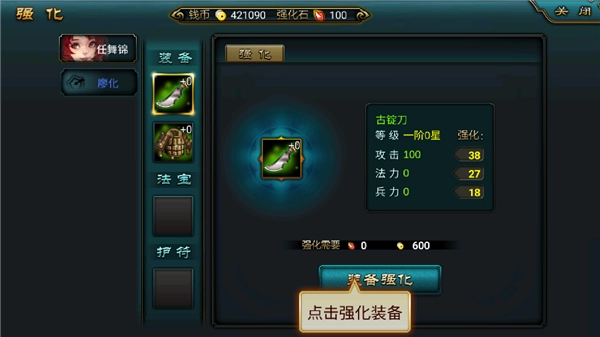 游戏里很多玩家经常问装备该强化到多少,这里给大家一个参考,30级前主角衣服+21 周瑜的武器和衣服+21足够了35级主角武器+21,衣服+31,40级周瑜衣服+31 武器+21,到45级时至少有3件+31的衣服,周瑜+31的武器,其余辅助性职业如大小乔把衣服强到+21 剩下的钱大家就多用来收集将魂吧。