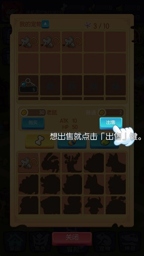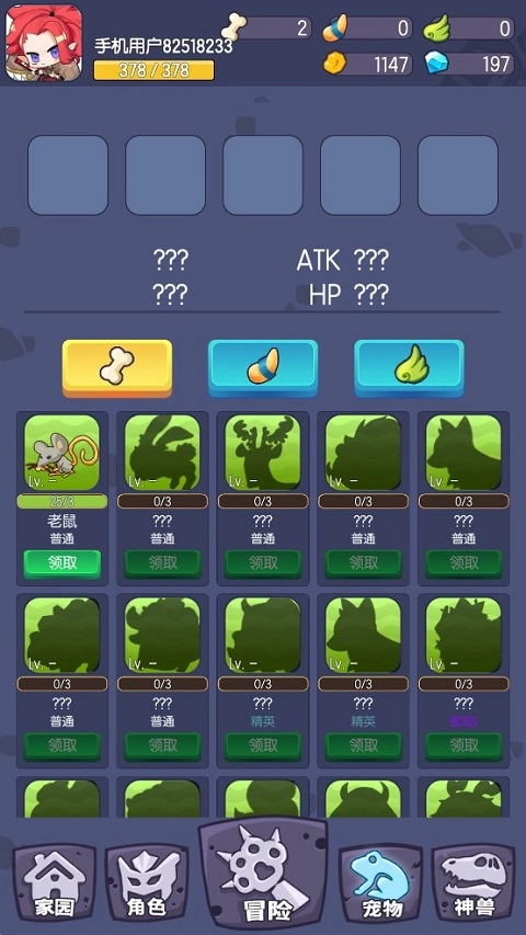 6、在“宠物”系统内,玩家可以依据狩猎的一般动物数量召唤英雄动物或进行升级。