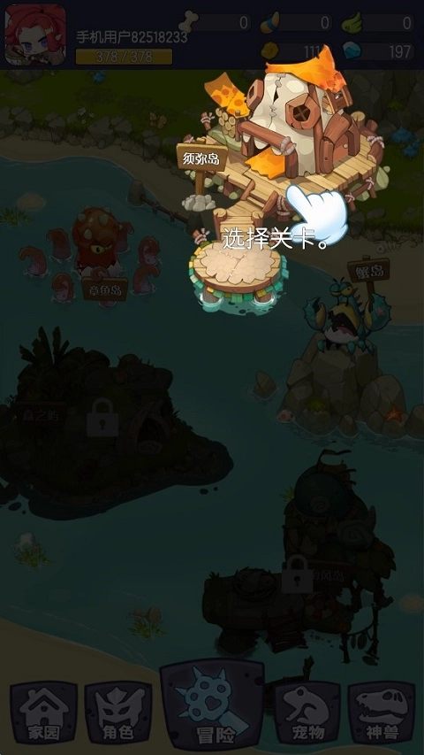 在冒险界面中,选择关卡。