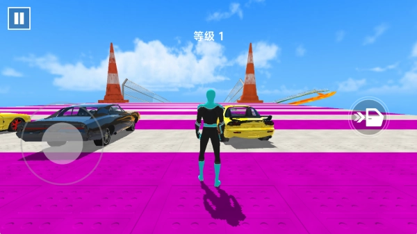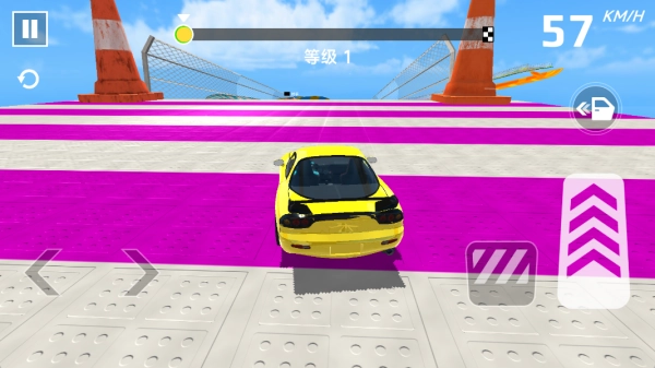 2、特技赛道中设置多种动态障碍与互动元素,驶过加速带能获得短时加速,借助弹跳板可跳至更高赛道层。
