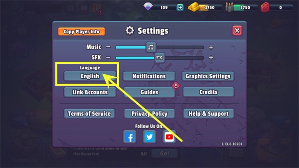 1、在本站下载并安装Guns Up最新版后,进入游戏主界面,点击左上角的设置按钮。