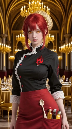 性格:热情洋溢,对烹饪有疯狂的执念,认为魔王的味蕾需要被黑暗美食唤醒。说话语速极快,常对着锅具自言自语,对食材的新鲜度有变态要求。
