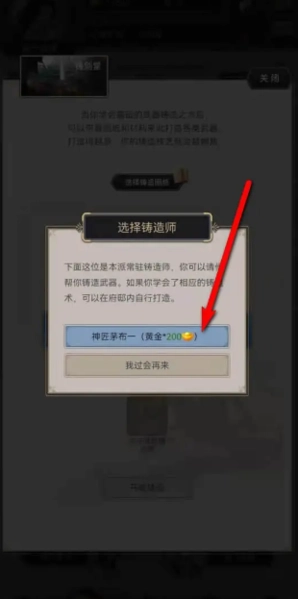 1.点选“门派”,点击进入武当派“铸剑室”。