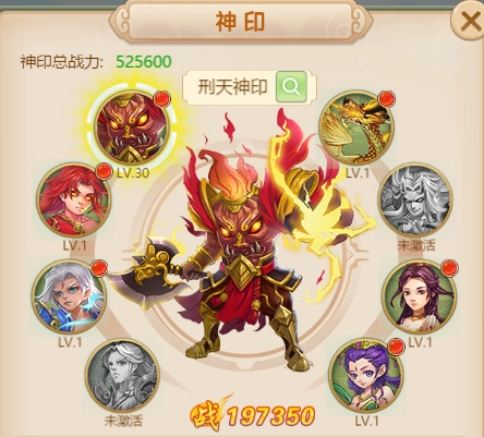 神印通过各个式神的碎片激活,升级可以获得极其稀有的PVE和PVP属性。