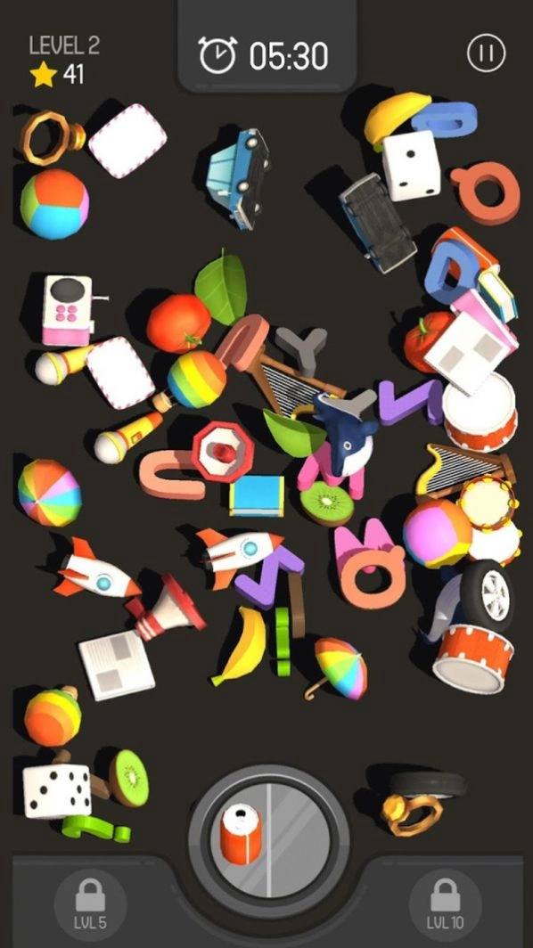 1、游戏随着玩家游玩的深入,玩家面对的物品会越来越多,玩家需要以更快的速度找到相同的物品消除它们;