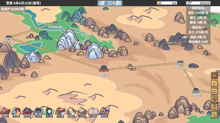 当你在游戏中达到一定财富积累后,便可以开设属于自己的商号了!商号会吸引很多外部商队,他们将在你的旗号下自动贸易、自动上缴佣金,躺着年入百万银两不是梦。