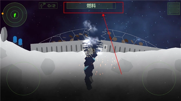 3、上方会显示飞行器的燃料,我们必须在燃料耗尽前到达指定位置