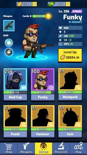 选择自己喜欢的人物形象,培养升级手持武器进行战斗。