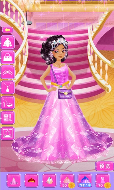 3、游戏准备了超级多的服装还有配饰,所以选择性更大,选择好之后别忘了给公主画上美美的妆容哦。