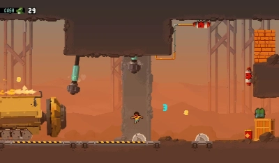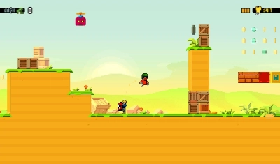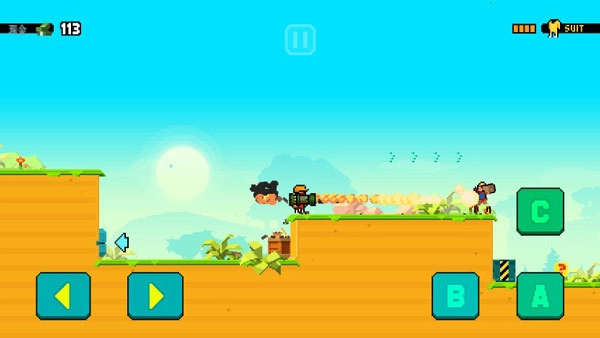 总体来说,游戏的机制都复刻超级玛丽的,左侧移动,右侧跳跃中规中矩,但唯一不同的就是加入了动作射击和一些武器装备机制,通过空投和一些放置点可以收获一些武器装备让你更加的帅气威武,收集沿途的金币,寻找收集空瓶子里的地图碎片,找到我们传说中的金钱树。