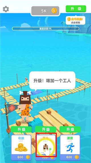 然后通过金币来不断的加速、招募工人、提升等级等方式