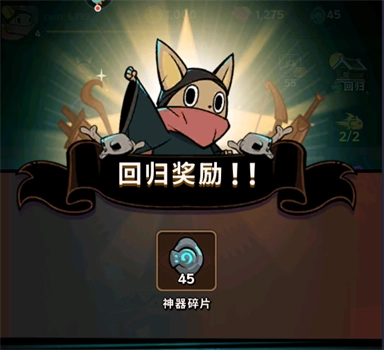 下面是回归功能的所获得的道具,也就是神器碎片。神器碎片作用于抽取神器,神器全部抽集齐后就能成功解锁“永久训练”。