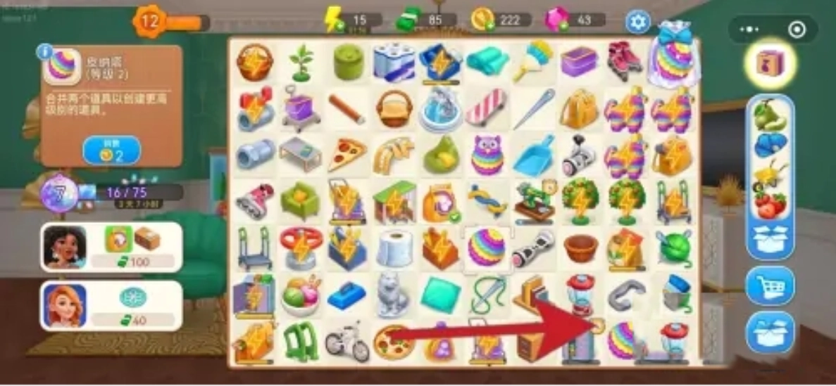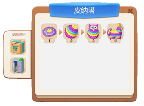 3、四级锁柜点击得到工具后就可以开始合成皮纳塔:一级皮纳塔→二级皮纳塔→三级皮纳塔→四级皮纳塔(四级皮纳塔开始产出糖果道具)。