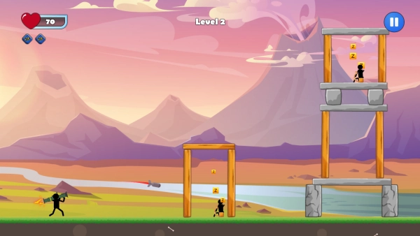 斯蒂克慢砰最新版是一款以火柴人为主题的游戏,玩家可以使用各类爆炸物进行畅快的轰炸体验。操作方式十分简单,只需拖拽瞄准后释放武器,就能欣赏到绚丽的爆炸效果以及连锁坍塌的壮观场景。在游戏中,你将扮演一名火柴人士兵,借助火箭筒、手雷等装备,对藏身于木质高塔或石质堡垒中的敌人发起攻击并将其摧毁。这款游戏以最直观的方式,为玩家呈现出一场场充满乐趣的物理破坏盛宴。