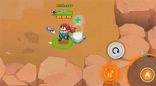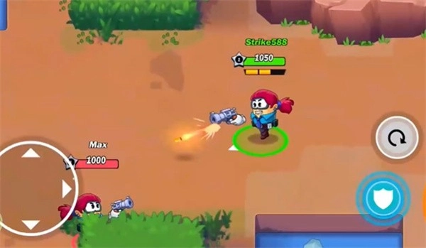 2、通过虚拟按键控制角色移动,还能不断发射子弹攻击敌人。