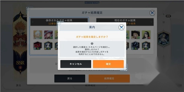 通过点击结果确认按钮,您可以选择保存的10连抽结果或最后抽取的10连抽结果。